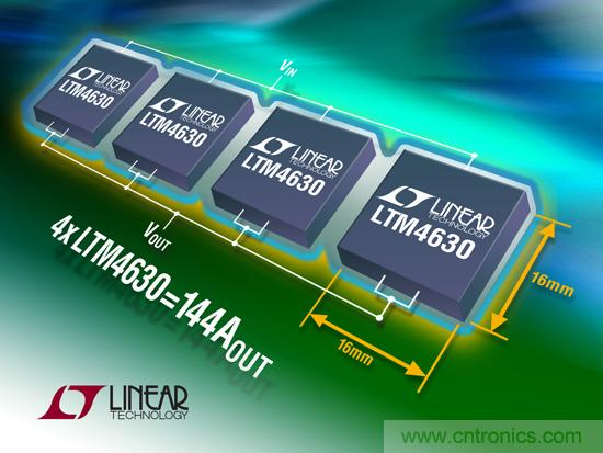 ●利用多個 LTM4630 實現多相並聯均流,電流可高達 144A