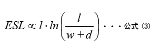 關於ESL:多層陶瓷電容器的ESL極易受內部電極結構影響。設內部電極大小的長度為l、寬度為w、厚為d時,根據F.W.Grover,電極電感ESL可用公式(3)表示。