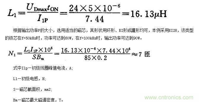 詳細的變壓器設計方法與計算相當複雜,本文參照經驗公式,依據下麵的步驟設計了本例轉換器中的高頻變壓器。