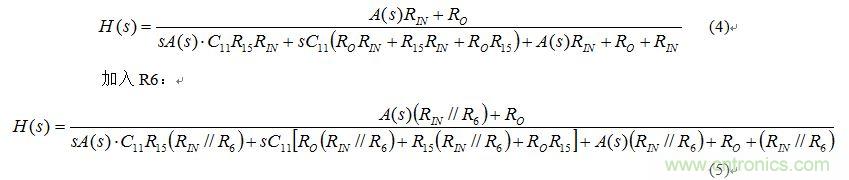 為什麼加入R6會使係統的極點由3個變為1個呢,對此不解,因此將增益A用A(s)代替,將係統函數寫為:不加入R6: