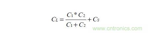 圖示的C1,C2就是為晶振工作在並聯諧振狀態下得到加載電容CL的電容。關於最優的加載電容CL的計算公式為: