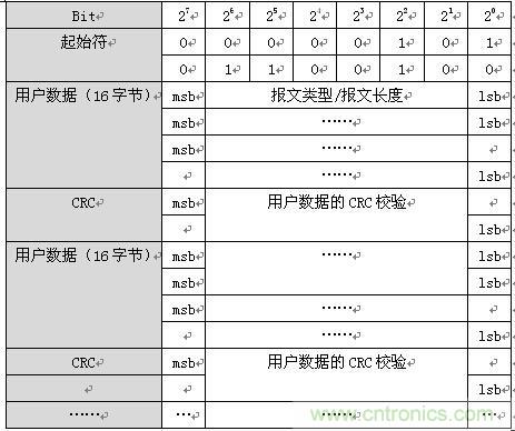 (5) 用戶數據之後跟隨一個16位的CRC校驗序列,由下列多項式生成校驗,序列碼為X16+X13+X12+X11+X10+X8+X6+X5+X2+1,生成的16比特校驗序列再取反成為所要求的校驗序列。