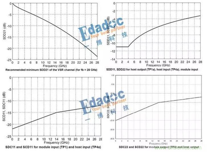 我們還是先來看看28G-VSR協議裏麵到底定義了通道的哪些東西吧,如下圖二所示,有插損、回損及模態轉換的一些無源要求。