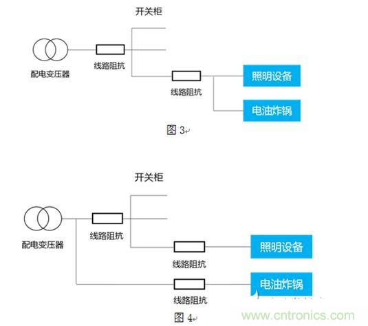 解決方法:發現問題後解決就比較簡單了,使大功率負載(電油炸鍋)單獨使用一條電纜後,問題解決,如圖3、圖4所示。