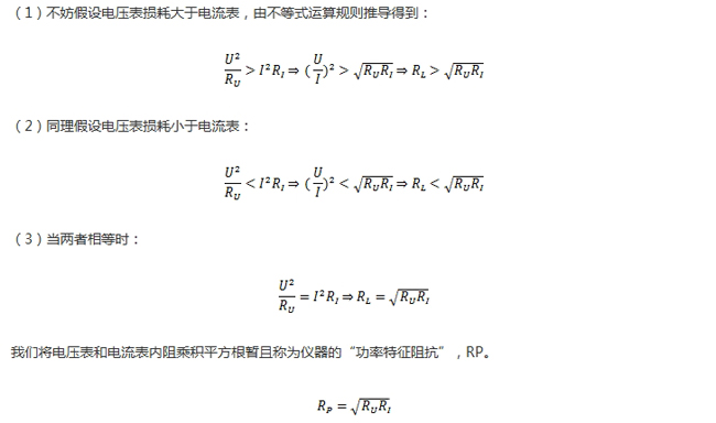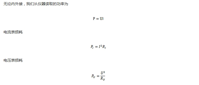 (1)電(dian)流(liu)表(biao)內(nei)接(jie)時(shi),電(dian)流(liu)表(biao)讀(du)數(shu)即(ji)為(wei)負(fu)載(zai)電(dian)流(liu),電(dian)壓(ya)表(biao)讀(du)數(shu)是(shi)電(dian)流(liu)表(biao)內(nei)阻(zu)壓(ya)降(jiang)和(he)負(fu)載(zai)電(dian)壓(ya)之(zhi)和(he),因(yin)此(ci)儀(yi)器(qi)的(de)測(ce)量(liang)結(jie)果(guo)中(zhong)包(bao)含(han)了(le)電(dian)流(liu)表(biao)的(de)損(sun)耗(hao)功(gong)率(lv)PI。