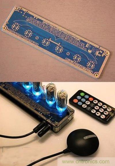 再來是Tube Clock Database網站上展示,由名為“yanzeyuan”(中文名:嚴澤遠)的網友設計的真空管時鍾(nixie tube clock);除(chu)了(le)美(mei)觀(guan)的(de)繞(rao)線(xian),電(dian)路(lu)板(ban)上(shang)還(hai)簡(jian)短(duan)介(jie)紹(shao)了(le)真(zhen)空(kong)管(guan)時(shi)鍾(zhong)以(yi)及(ji)其(qi)運(yun)作(zuo)原(yuan)理(li)。比(bi)較(jiao)常(chang)見(jian)的(de)真(zhen)空(kong)管(guan)時(shi)鍾(zhong)會(hui)放(fang)在(zai)木(mu)製(zhi)或(huo)金(jin)屬(shu)外(wai)殼(ke)內(nei),而(er)這(zhe)個(ge)作(zuo)品(pin)讓(rang)真(zhen)空(kong)管(guan)時(shi)鍾(zhong)的(de) 呈現有完全不同的風貌。