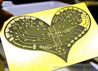開發板有心形的?這是一位網友Takumi Funada的po文,可惜原始出處的連結似乎已經失效;不過你可以在(這裏找到設計圖,還有用心形電路板上的蜂鳴器演奏出的音樂)