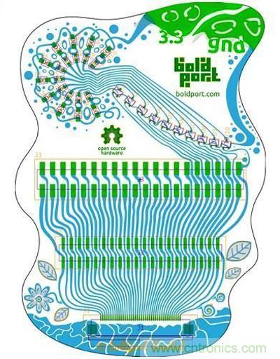 【導讀】藝(yi)術(shu)創(chuang)作(zuo)衝(chong)動(dong)是(shi)人(ren)類(lei)的(de)天(tian)性(xing),有(you)時(shi)候(hou)這(zhe)樣(yang)的(de)激(ji)情(qing)也(ye)會(hui)洋(yang)溢(yi)在(zai)科(ke)技(ji)領(ling)域(yu),反(fan)過(guo)來(lai)說(shuo),其(qi)實(shi)科(ke)技(ji)化(hua)的(de)趨(qu)勢(shi)也(ye)會(hui)對(dui)藝(yi)術(shu)產(chan)生(sheng)影(ying)響(xiang)。無(wu)論(lun)如(ru)何(he),藝(yi)術(shu)與(yu)科(ke)技(ji)相(xiang)遇(yu)所(suo)激(ji)發(fa)出(chu)來(lai)的(de)火(huo)花(hua),會(hui)讓(rang)我(wo)們(men)眼(yan)前(qian)一(yi)亮(liang)。例(li)如(ru)文(wen)章(zhang)裏(li)的(de)電(dian)路(lu)板(ban)設(she)計(ji),使(shi)用(yong)枯(ku)燥(zao)簡(jian)潔(jie)的(de)線(xian)條(tiao),同(tong)時(shi)也(ye)加(jia)入(ru)一(yi)些(xie)變(bian)化(hua)與(yu)美(mei)學(xue)的(de)繞(rao)線(xian)形(xing)式(shi)。