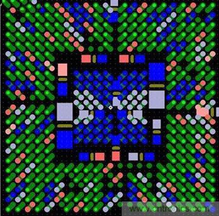 圖6:這種扇出方法避免了使用高端技術,而且不會影響信號完整性。BGA引腳分成內部引腳和外部引腳兩部分。