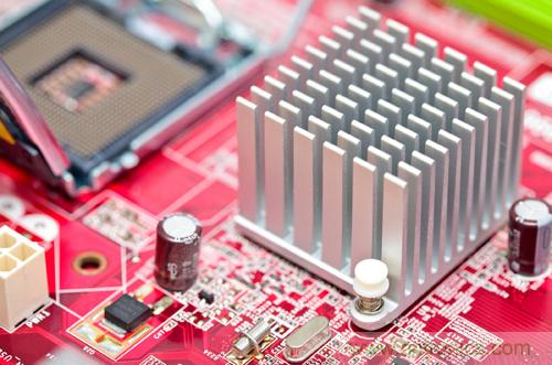 對於任何可能過熱的元器件,都應當研究能否通過使用散熱器來有效地降低元器件溫度。如果氣流方向主要與封裝的一側垂直,則板型(或擠壓)鰭片散熱器可能最合適。否則,應當考慮釘狀鰭片散熱器。