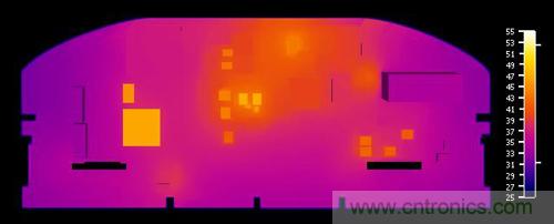 圖 4:設計期間的 CFD 結果與利用紅外攝像機測量的實際 PCB 的對比