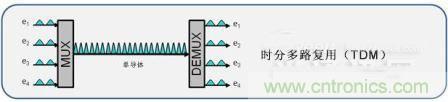 時shi分fen複fu用yong是shi一yi種zhong通tong過guo使shi用yong越yue來lai越yue小xiao的de時shi間jian增zeng量liang來lai傳chuan輸shu更geng多duo的de數shu據ju的de方fang式shi,並bing且qie將jiang較jiao低di數shu據ju率lv的de信xin號hao複fu用yong進jin較jiao高gao速su度du的de複fu合he信xin號hao中zhong。通tong過guo時shi分fen複fu用yong,較jiao低di速su度du的de電dian信xin號hao交jiao錯cuo在zai時shi間jian中zhong,並bing在zai較jiao快kuai的de複fu合he光guang路lu上shang傳chuan輸shu。因yin此ci,所suo得de的de較jiao高gao數shu據ju速su率lv將jiang是shi單dan個ge輸shu入ru速su率lv的de數shu倍bei。