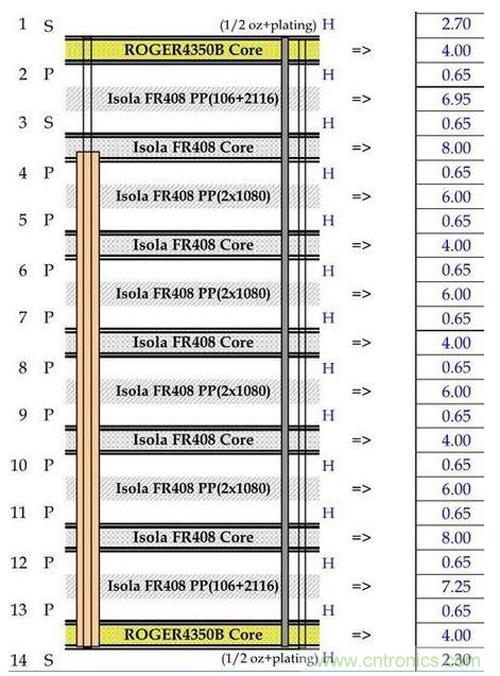 在混合疊層情形下,可以輕鬆地使用通用製造工藝技術將Rogers和高性能FR4混合在一起使用,因此也相對容易實現高的製造良率。Rogers疊層不需要專門的過孔準備工序。