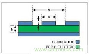 懸xuan浮fu帶dai狀zhuang線xian是shi另ling外wai一yi種zhong布bu線xian和he抑yi製zhi噪zao聲sheng的de方fang法fa。這zhe種zhong線xian由you內nei層ceng上shang固gu定ding寬kuan度du的de布bu線xian和he中zhong心xin導dao體ti上shang下xia的de大da塊kuai地di平ping麵mian組zu成cheng。地di平ping麵mian夾jia在zai電dian源yuan層ceng中zhong間jian,因yin此ci可ke以yi提ti供gong非fei常chang有you效xiao的de接jie地di效xiao果guo。對dui可ke穿chuan戴daiPCB射頻信號布線來說這是優選的一種方法。