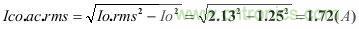 假設已知連續工作模式的反激變換器,其輸出電流Io為1.25A,紋波率r為1.1,占空比D為0.62,開關頻率為60kHz,由此可以計算次級紋波電流ΔIo和有效值電流Io.rms。