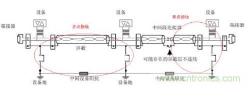 shiyongpingbixianhou,zaipingbicengmeiyoulianghaojiedadiqian,pingbixianshibuqizuoyongde。suoyiwomenyaoxuanzeyizhongjiedifangshi。tongchanglaishuo,pingbicengdandianjiedikeyibimiandihuiliu(不同位置的地電位不同而導致的產生電流)、多點接地可以加快高頻幹擾信號的泄放。所以要根據實際情況選擇合適的接地方式。如圖11所示。