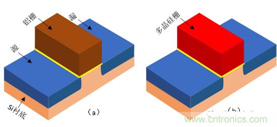 圖1.13鋁柵和多晶矽柵的MOS管結構圖