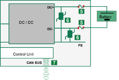 4.高壓直流側過電流保護:有助於消除由於 OCB 或電池組中的故障或交通事故等外部事件造成的短路危險。