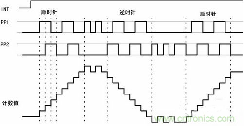 方向盤轉角傳感器的輸出為正交編碼脈衝。正交編碼脈衝包含兩個脈衝序列,有變化的頻率和四分之一周期(90°)的固定相位偏移,如圖1所示。通過檢測2路信號的相位關係可以判斷為順時針方向和逆時針方向,並據此對信號進行加/jianjishu,congerdedaodangqiandejishuleijizhi,yejifangxiangpandejueduizhuanjiao,erzhuanjiaodebianhualvjijiaosudu,zeketongguoxinhaopinlvcechu。lingwai,fangxiangpanzhuanjiaochuanganqiyouyigelingweishuchuxinhao,dangfangxiangpanzaizhongjianweizhishi,gaixinhaoshuchu0V,否則輸出5V,通過該信號,可對絕對轉角進行在線校準。