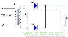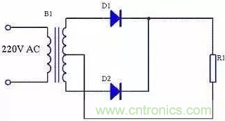 全波整流電路每個整流二極管上流過的電流隻是負載電流的一半,比半波整流小一倍。