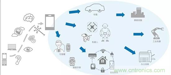 他指出按照這個原理疊加,如果再疊加人的肌肉----類似一些電機控製執行器件,就形成了機器人的概念,再把低功耗小型化智能運用就形成IOT物聯網概念,隨著技術的在進步,智慧手機會超越了手機行業的範疇,逐步進入到各個其他領域。如車載、機器人、穿戴設備,給其他周邊設備、周邊行業等,帶來革命性的產品形態變化。