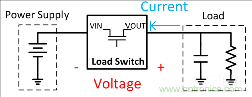 TI負載開關是用來接通和關閉電源軌的集成電子中繼器。大多數基本負載開關采用小型集成封裝,由四個引腳組成:輸入電壓、輸出電壓、使能、和接地,並且包含多重特性,其中有反向電流保護。圖4顯示了一個用來阻斷反向電流的負載開關。