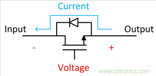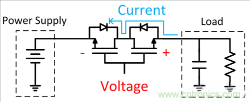 圖3:用雙FET實現的反向電流阻斷