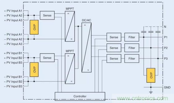 左:太陽能組件與逆變器輸入端的過電壓保護(OVP)