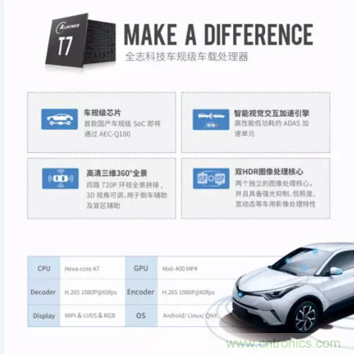 全誌科技是國內智能應用處理器SoC和模擬芯片設計廠商之一,專注於智能音視頻的相關產品,其SoC應用於平板電腦、智慧家居、VR、運動相機、OTT盒子等。全誌科技車聯網事業部成立於2014年,是基於車載電子發展到智能聯網時代專門成立的。當時全誌科技推出了專門針對汽車的T3芯片,在後裝市場及部分前裝市場均表現不俗,尤其在後裝車機市場有非常高的占有率。隨後在2017年,全誌科技推出了國內SoC芯片廠家中的首款車規級芯片T7,這標誌著全誌科技開始全方位大力進軍車機的前裝市場。在2019年底、2020年初,全誌科技還將推出高規格的前裝車規級芯片。