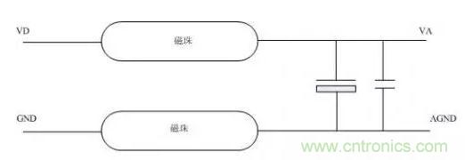 記得在剛學習DSP設計時,師傅在DSP模擬部分應用是推薦一個電路,就是在數字電源和模擬電源上串兩個磁珠,然後加上濾波電容就OK了,很長一段時間,都奉為經典,直到接觸EMC設計時,才發現錯的有多厲害,也明白了當時的一些問題的症結所在。