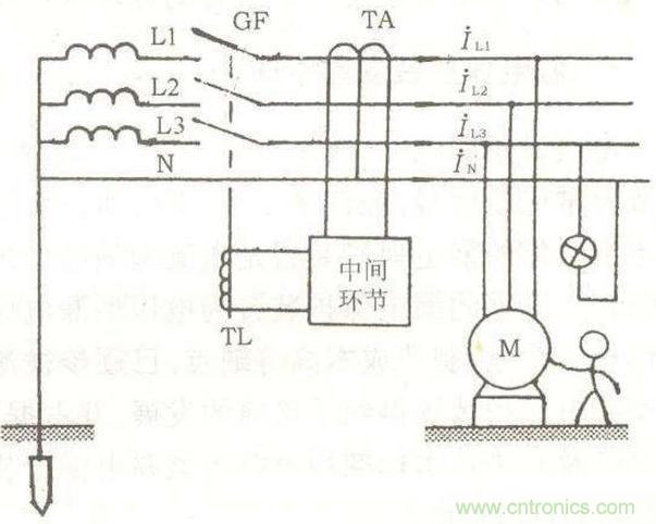 像我們家中的漏電保護器的原理圖就如上圖一般,漏電保護器就是一種電流形繼電器,當電流大於設定值的時候是開關跳閘。