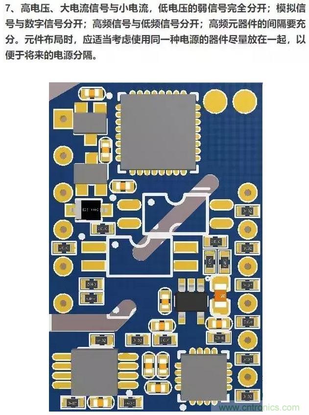 1、遵照“先大後小,先難後易”的布置原則,即重要的單元電路、核心元器件應當優先布局。這個和吃自助餐的道理是一樣的:自助餐胃口有限先挑喜歡的吃,PCB空間有限先挑重要的擺。