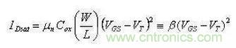 因為MOSFET的電壓增益是在源-漏電流一定的情況下、輸出電壓VDS對柵-源電壓VGS的微分,則飽和狀態的電壓增益Kvsat將要求器件具有較小的飽和電壓(VGS-VT):