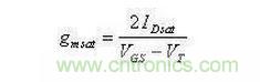 ②在飽和電流IDsat一定時:飽和跨導gmsat卻與飽和電壓(VGS-VT)成反比: