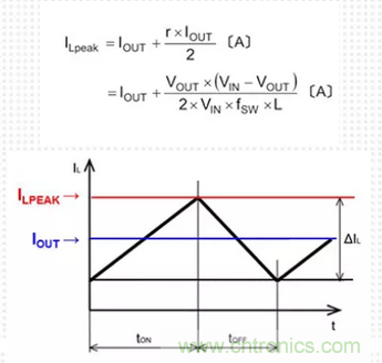 從公式和電流波形可知,ILPEAK值為ΔIL的1/2加IOUT的值。