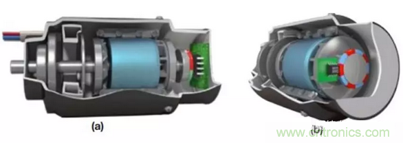 針對大多數BLDC控製係統,根據可用空間大小和電機軸的可接近性,有許多方法來配置和安裝傳感器。以ADA4571作例,如圖3所示是兩個較普遍的安裝配置。