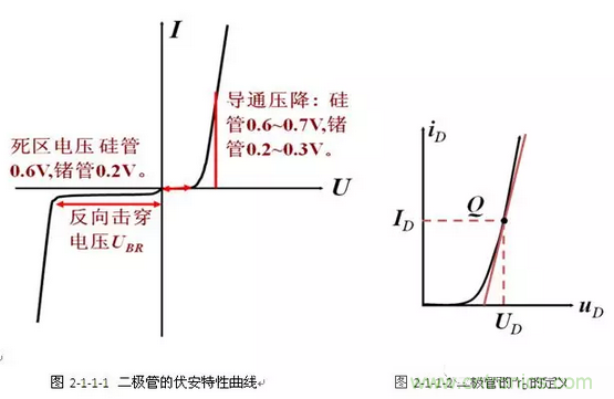 如圖2-1-1-2所示,rD是二極管特性曲線上工作點Q 附近電壓的變化與電流的變化之比:rD=△UD/△iD