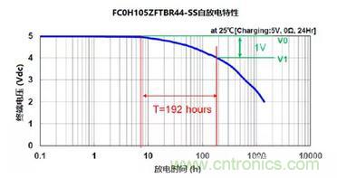 圖2:KEMET公司FC係列超級電容器的自放電特性