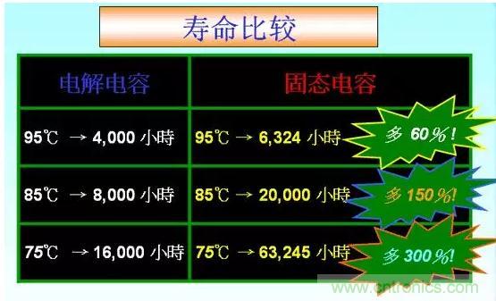使用固態電容好處二:壽命長,穩定性好