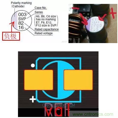 在PCB板上,白色標誌為負,有+號的一端為正。其實啊,還是不要管什麼標示,誰知道你有沒有畫錯PCB,或(huo)封(feng)裝(zhuang)畫(hua)錯(cuo),老(lao)老(lao)實(shi)實(shi)回(hui)到(dao)電(dian)路(lu)上(shang)麵(mian)去(qu),正(zheng)電(dian)源(yuan)進(jin)去(qu)和(he)出(chu)來(lai)都(dou)接(jie)電(dian)容(rong)正(zheng)極(ji),電(dian)容(rong)負(fu)極(ji)接(jie)地(di)。負(fu)電(dian)源(yuan)輸(shu)入(ru)和(he)輸(shu)出(chu)都(dou)接(jie)電(dian)容(rong)負(fu)極(ji),電(dian)容(rong)正(zheng)極(ji)接(jie)地(di)。