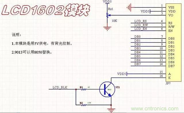 8、LCD1602字符液晶模塊(KS0066)最常用的字符液晶模塊,隻能顯示數字和字符,可4位或8位控製,帶背光功能。