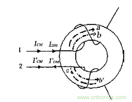 抑製共模幹擾的主要方法是應用共模扼流圈。共模扼流圈是共模插入損耗中起主導作用的電感元件。它是在一個磁環/閉合磁路的上下兩個半環上,分別繞製相同匝數但繞向相反的線圈。