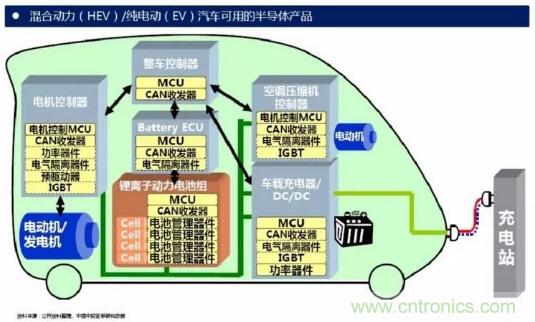 A)電動控製係統 大功率直流/交流(DC/AC)逆變後驅動汽車電機;B)車載空調控製係統 小功率直流/交流(DC/AC)逆變,使用電流較小的IGBT和FRD;C)充電樁 智能充電樁中IGBT模塊被作為開關元件使用;