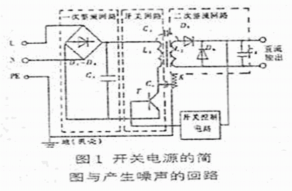 開關電源利用半導體器件的開和關工作,並以開和關的時間比來控製輸出電壓的高低,由於其通常工作在20KHz以上的開關頻率工作,開關電源內的dv/dt、di/dt很大,產生嚴重的浪湧電壓、浪湧電流和其它各種噪聲。圖1是(shi)典(dian)型(xing)的(de)開(kai)關(guan)電(dian)源(yuan)的(de)簡(jian)圖(tu)和(he)產(chan)生(sheng)噪(zao)聲(sheng)的(de)回(hui)路(lu),含(han)有(you)大(da)量(liang)高(gao)次(ci)諧(xie)波(bo)的(de)噪(zao)聲(sheng)通(tong)過(guo)閉(bi)台(tai)回(hui)路(lu)向(xiang)空(kong)間(jian)輻(fu)射(she)電(dian)磁(ci)能(neng)量(liang),即(ji)差(cha)模(mo)電(dian)流(liu)的(de)輻(fu)對(dui)幹(gan)擾(rao)。通(tong)常(chang)的(de)閉(bi)合(he)環(huan)形(xing)回(hui)路(lu)的(de)形(xing)狀(zhuang)都(dou)是(shi)不(bu)規(gui)則(ze)的(de),這(zhe)裏(li)我(wo)們(men)隻(zhi)討(tao)論(lun)一(yi)般(ban)的(de)模(mo)型(xing),如(ru)圖(tu)2所示。