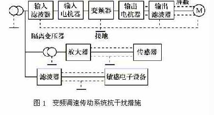 變頻器調速技術是集自動控製、微電子、電力電子、通信等技術於一體的高科技技術。它以很好的調速、節能性能,在各行各業中獲得了廣泛的應用。由於其 采用軟啟動,可以減少設備和電機的機械衝擊,延長設備和電機的使用壽命。隨著科學技術的高速發展,變頻器以其具有節電、節能、可靠、高效的特性應用到了工業控製的各個領域中,如變頻調速在供水、空調設備、過程控製、電梯、機床等方麵的應用,保證了調節精度,減輕了工人的勞動強度,提高了經濟效益,但隨之也 dailaileyixieganraowenti。xianchangdegongdianheyongdianshebeihuiduibianpinqichanshengyingxiang,bianpinqiyunxingshichanshengdegaocixieboyehuiganraozhouweishebeideyunxing。bianpinqichanshengdeganraozhuyaoyousanzhong:對電子設備的幹擾、對通信設備的幹擾及對無線電等產生的幹擾。對計算機和自動控製裝置等電子設備產生的幹擾主要是感應幹擾;對通信設備和無線電等產生的幹擾為放 射幹擾。如果變頻器的幹擾問題解決不好,不但係統無法可靠運行,還會影響其他電子、電dian氣qi設she備bei的de正zheng常chang工gong作zuo。因yin此ci有you必bi要yao對dui變bian頻pin器qi應ying用yong係xi統tong中zhong的de幹gan擾rao問wen題ti進jin行xing探tan討tao,以yi促cu進jin其qi進jin一yi步bu的de推tui廣guang應ying用yong。下xia麵mian主zhu要yao討tao論lun變bian頻pin器qi的de幹gan擾rao及ji其qi抑yi製zhi方fang法fa。