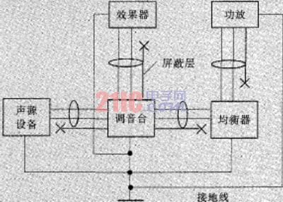 在音頻係統中,必須要求整個係統有良好的接地,接地電阻要4歐姆。否則音頻係統中設備由於各種輻射和電磁感應產生的感應電荷將不能夠流入大地,從而形成噪聲電壓疊加到音頻信號中。