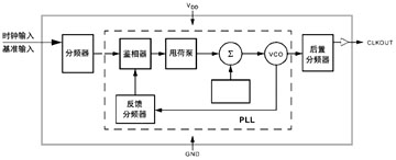 W181采用了頻率鎖相環(PLL)技術來調製輸入時鍾,其結果是得到一個輸出時鍾,它的頻率可緩慢地掃過一個接近於輸入信號的窄帶。基本電路結構如圖2所示。