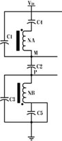 兩隻開關管的電容分布如圖2所示,其中C2是繞組NA的下端M與NB的上端P間的分布電容。當驅動變壓器的繞組NA輸出正脈衝時NB輸出負脈衝,TA管由截止轉為飽和導通,於是TA管的源極即M點的電位急速升高,並通過電容C2提升NB繞組上端P的電位,升高的數值與兩個繞組的分布電容C1、C2、C3有關,還和P點到地的高頻阻抗以及M點電位上升的速度有關。如果提升的數值大於NB繞組自身的負脈衝幅度,就會引發TB管的瞬時導通,從而出現前麵所述的間歇振蕩。其他各管導通時也會有類似情況發生。