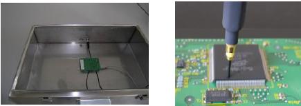 表麵掃描法通過測量集成電路表麵電場和磁場的方法來描述集成電路的電磁發射特性。該方法的測量頻率範圍可達10MHz—3GHz,測ce量liang采cai用yong電dian場chang探tan頭tou或huo磁ci場chang探tan頭tou按an一yi定ding順shun序xu掃sao過guo集ji成cheng電dian路lu表biao麵mian,由you接jie收shou機ji將jiang相xiang應ying的de測ce量liang結jie果guo依yi次ci傳chuan送song給gei計ji算suan機ji處chu理li。測ce試shi結jie果guo的de準zhun確que性xing與yu電dian場chang或huo磁ci場chang探tan頭tou的de特te性xing和he探tan頭tou定ding位wei裝zhuang置zhi的de精jing度du有you關guan。該gai方fang法fa可ke用yong於yu探tan測ce集ji成cheng電dian路lu芯xin片pian上shang不bu同tong部bu位wei的de電dian磁ci發fa射she分fen布bu情qing況kuang,適shi用yong於yu對dui集ji成cheng電dian路lu的de不bu同tong設she計ji方fang案an的de電dian磁ci發fa射she特te性xing的de比bi較jiao。