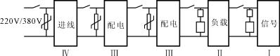 從圖1可以看出,在220V/380Vxianluzhongdemeiyiquyu,douyinggaizaiqiqianmianbinglianyanghuaxinyamindianzuqihuoguodianyabaohuqi,leidianganyingguodianyanengliangjiangtongguozhujidefangleiqijianxishouheshifangdaodadizhong,dadaobaohuxianluheshebeimianshouleidianpohuaidemude;雖然應用於Ⅳ、Ⅲ區域的過電壓保護器具有自身劣化斷開電源的功能,但考慮到不同的接地狀況,還應與過電壓保護器串聯合適的熔斷器或空氣開關.